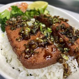 We ordered the orange chicken fried rice and the tofu bahn mi. My daughter raved about the orange chick'n so much I had to order my own. To go of course cause I could not finish my sandwich. The bahn mi was very flavorful and delicious but more than my little tummy could handle at one time. I asked for marinated tofu and it was fried to absolute perfection. It was the best bahn mi I didn't have to make myself. Khoi is a Gem. His hospitality was amazing! Great personality!! They have the best service that is quick and they keep the place clean. Will definately return!!!