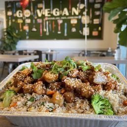 Great vegan food! They have great udon noodles with bbq. It comes with a big helping of vegetables mixed in. And their fried rice with orange chicken is so full of flavor. Each dish is enough for at least two people. Their Vietnamese coffee is amazing and strong! I've already returned a couple of times since trying it a couple of months ago. To top it off, they sell a very tasty bag of cookies and brownies.